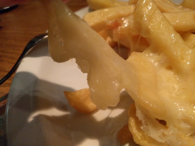 The waiter eventually comes by with a huge plate (worth it for £4.30, this is a serious meal rather than a side). The chips are thick and solid, perfectly capable of holding any amount of cheese thrown at them, but still have a light and airy interior – delicate, but substantial enough to enjoy by themselves.